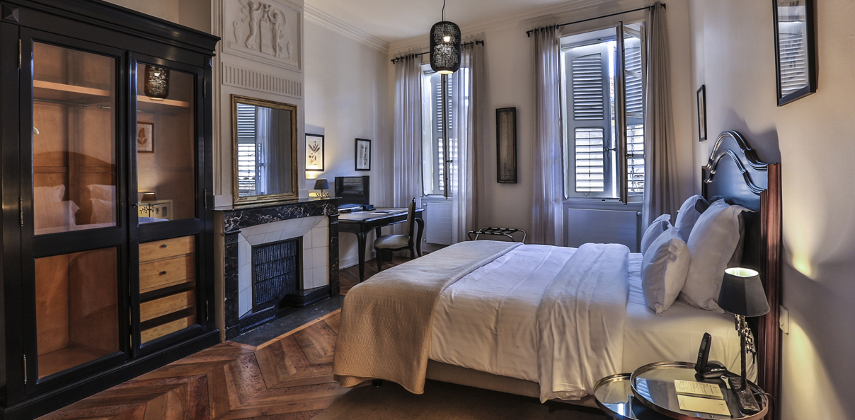 Présentation de quelques chambres et du petit déjeuner à Hôtel de la Villeon à Tournon-sur-Rhône.